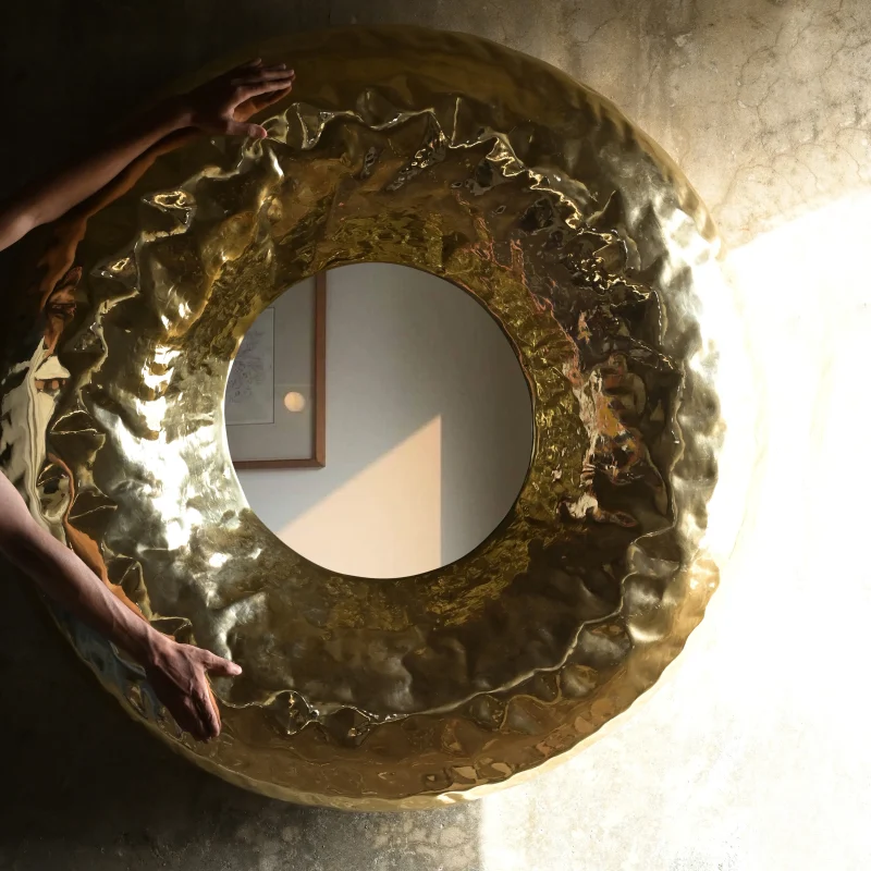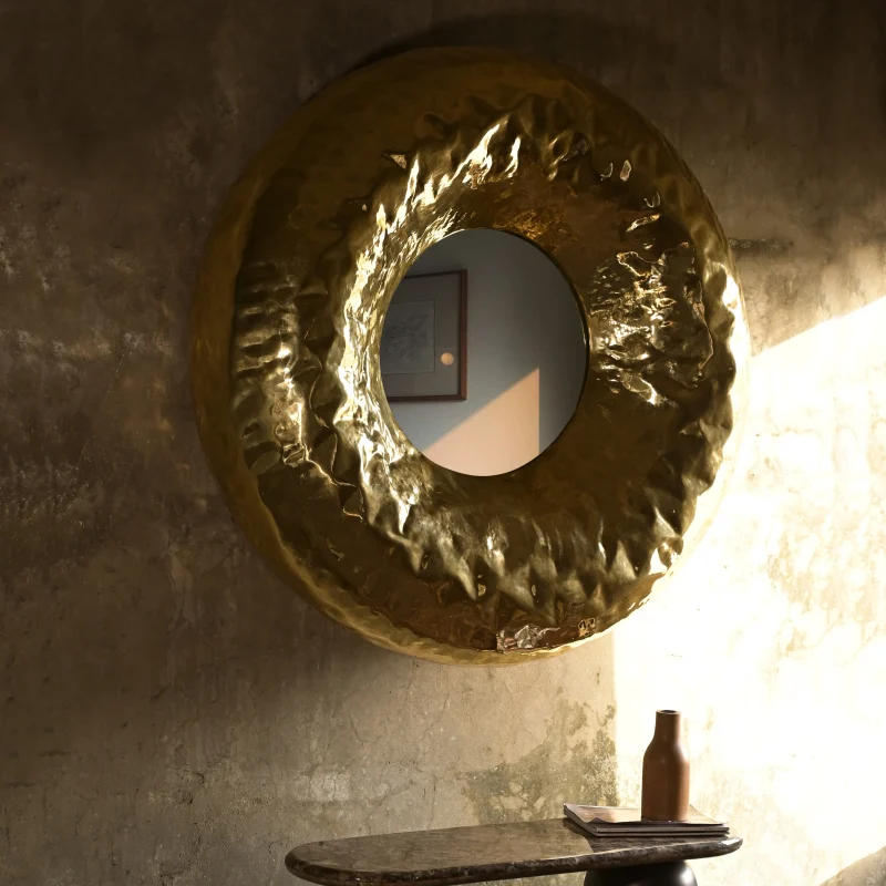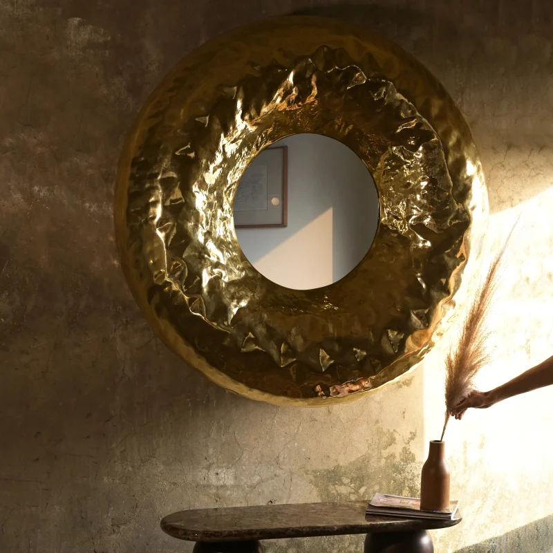 Get ready for a funhouse of design as you gaze into the depths of this accent mirror. It’s like having your own personal carnival, where every reflection brings a new surprise. Crafted with flair, our brass-framed luxury designer mirror is the ultimate showstopper for any room. Whether it graces your entryway, living room, or upscale hotels, it’s destined to steal the show as the pièce de résistance.