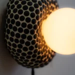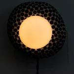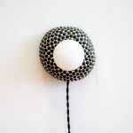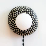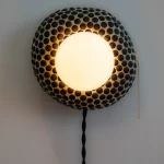 Wonky doughnut shape with a pull chain dimmer. Matte black recycled glass tile. Perfectly imperfect!