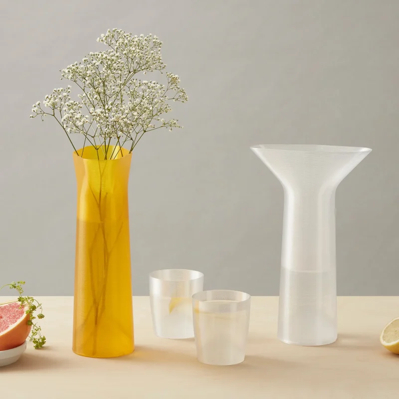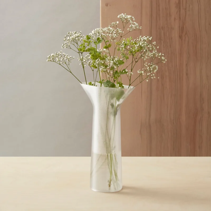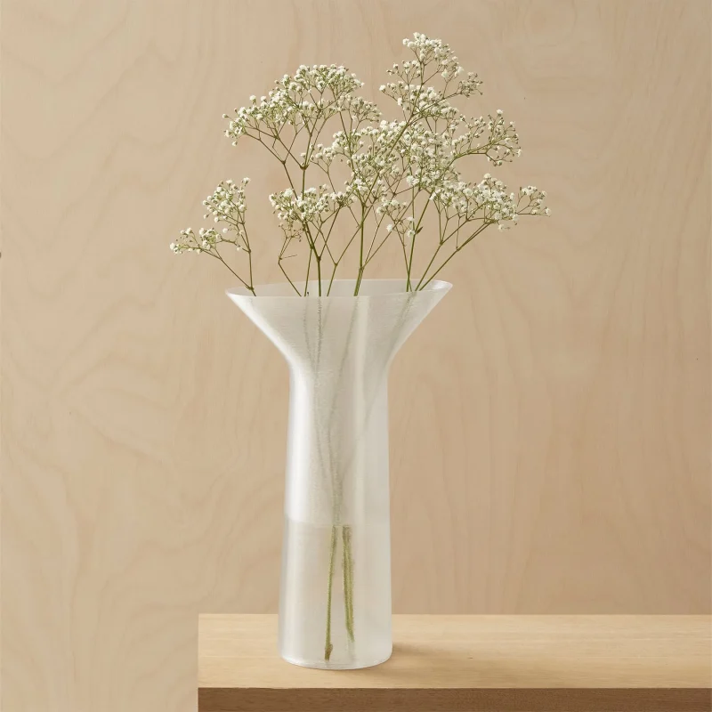 Doppia is a multi-use vessel, 3D printed from recycled plastic, designed to be used as a vase, a water carafe or simply as a decorative object. The vessel’s durable yet lightweight body is 3D printed from premium recycled plastic filament, by a leading printing facility in London. Available in ‘Clear’ and ‘Amber Yellow’ colours to suit any indoor or outdoor space. Each Vessel arrives with a signed + numbered graphical print of authenticity from the designer. Designed, manufactured and distributed by Tom Robinson Studio