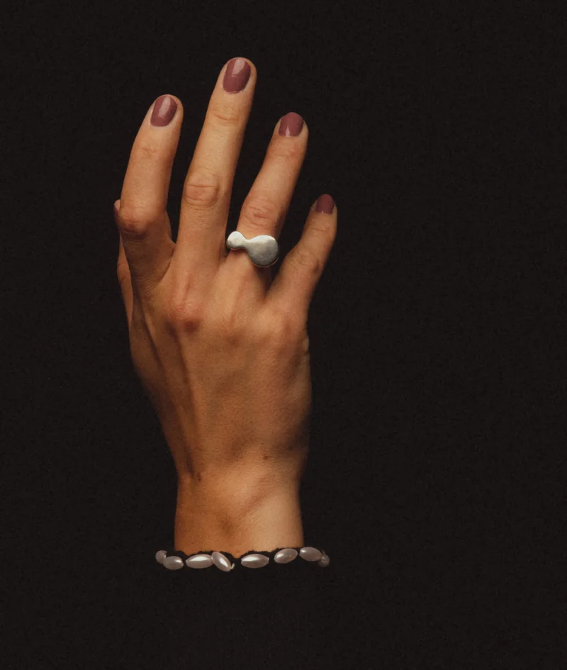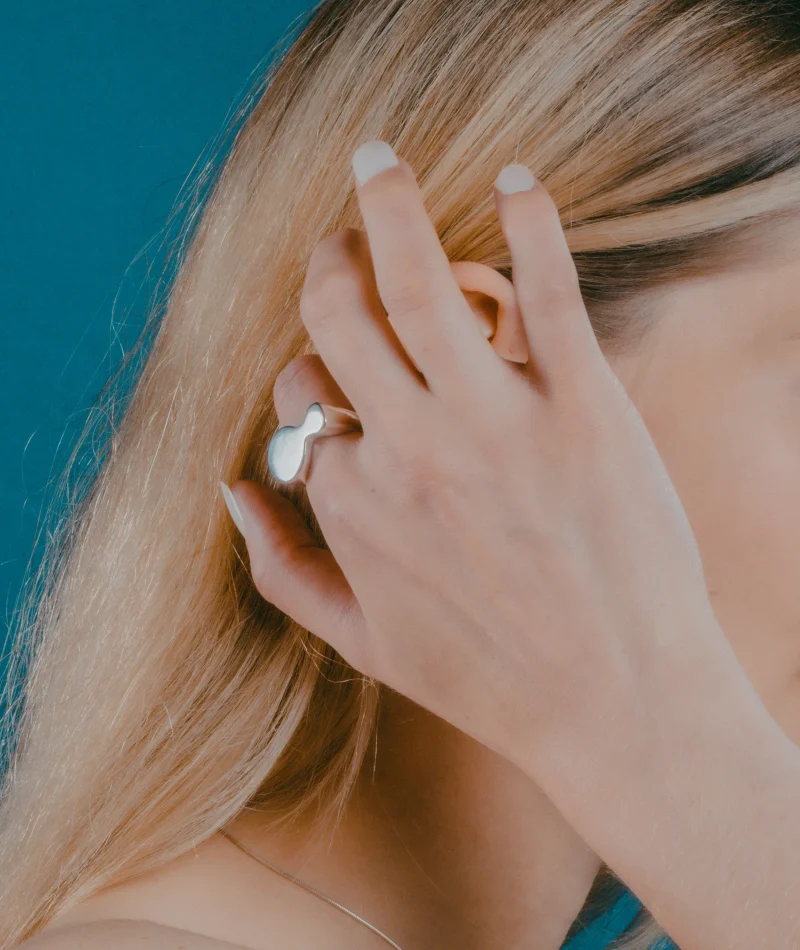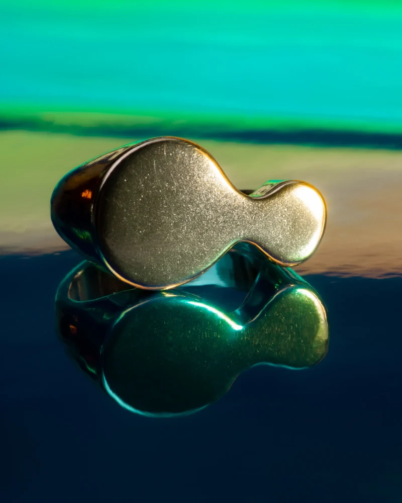A crowd pleaser, the smooth and flat surface of the double bubble ring by Onus Studio is sure to catch the light.