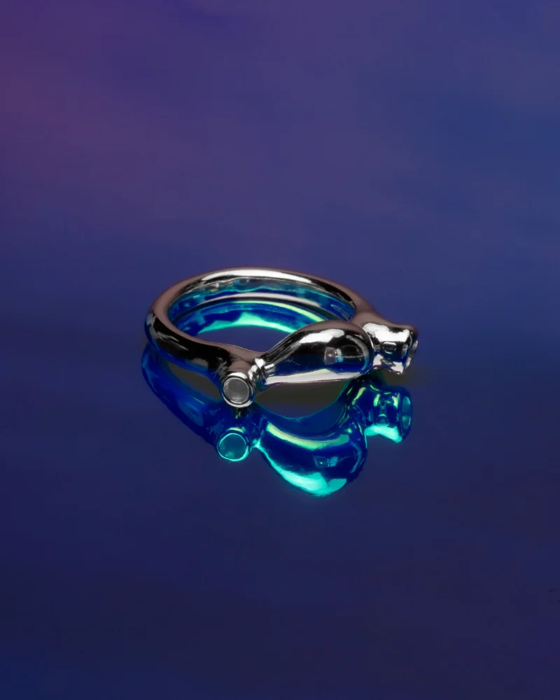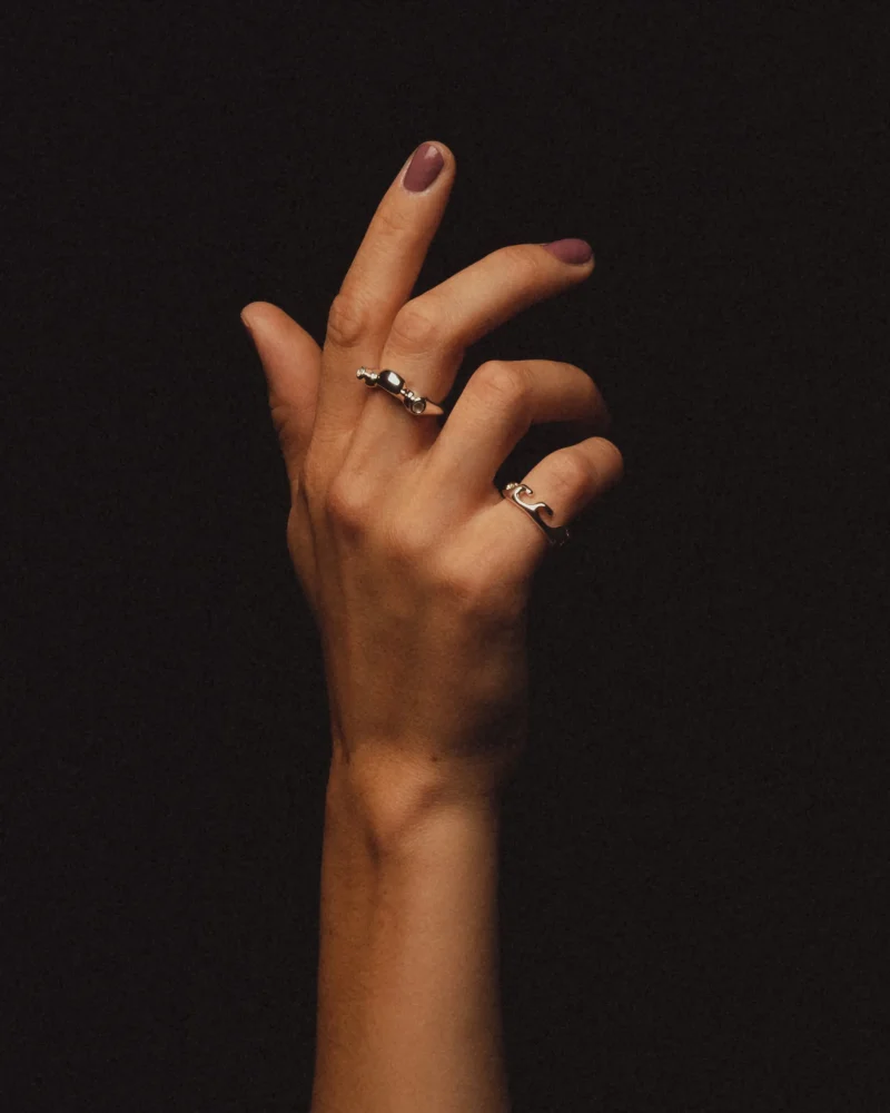 Freehand form and bulbous pockets bring the character of the double slug ring by Onus Studio to life.