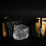 While burning in a wooden mould, liquid hot glass captures the tiniest details of a momentary structure, resulting in a unique shape and surface of each piece. This sculptural series is inspired by the form-making of nature and created by mastering the material and synergy of natural forces, elements of air and fire, noble materials of wood and glass.