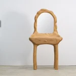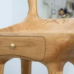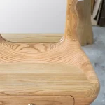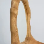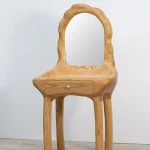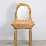 This dressing table vanity with a mirror by Alexander Knysch Studio is a striking fusion of artistry and functionality. Meticulously shaped using traditional hand tools, each piece is entirely unique, showcasing the distinctive grain patterns and natural character of high-quality red oak wood. The table features a seamlessly integrated drawer, blending practicality with refined design. Finished with a protective hard wax oil, it boasts a smooth, lustrous surface that highlights the warmth and richness of the wood while ensuring durability. This vanity table is a timeless and elegant addition to any space, offering both style and functionality in equal measure.