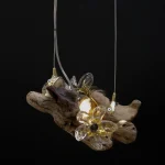 The piece uses standard G4 bulb connections. Recommended and provided is a 2W G4 bulb. The piece has 2m of additional steel wire and can be hing at various lengths.