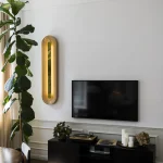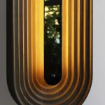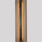 The Dromos lamp, by Polish design studio, Hasik Design, evokes an ancient stadium, its form crafted from solid, hand-polished oak wood, showcasing durability and nobility. The recessed, illuminated, milled levels in the material create a captivating play of light. Behind the brass facade, the concealed light source adds a touch of soft and decorative illumination, incorporating distinct Art Deco elements.