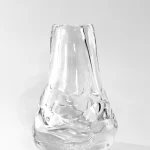 This vase is a product of an experimental and innovative approach to glass crafting. The team employs natural materials such as stones and ceramics in the blowing process, resulting in a rough, organic shape that captures the essence of natural beauty. This technique gives the vase its distinctive texture and form, distinguishing it from conventional glassware.