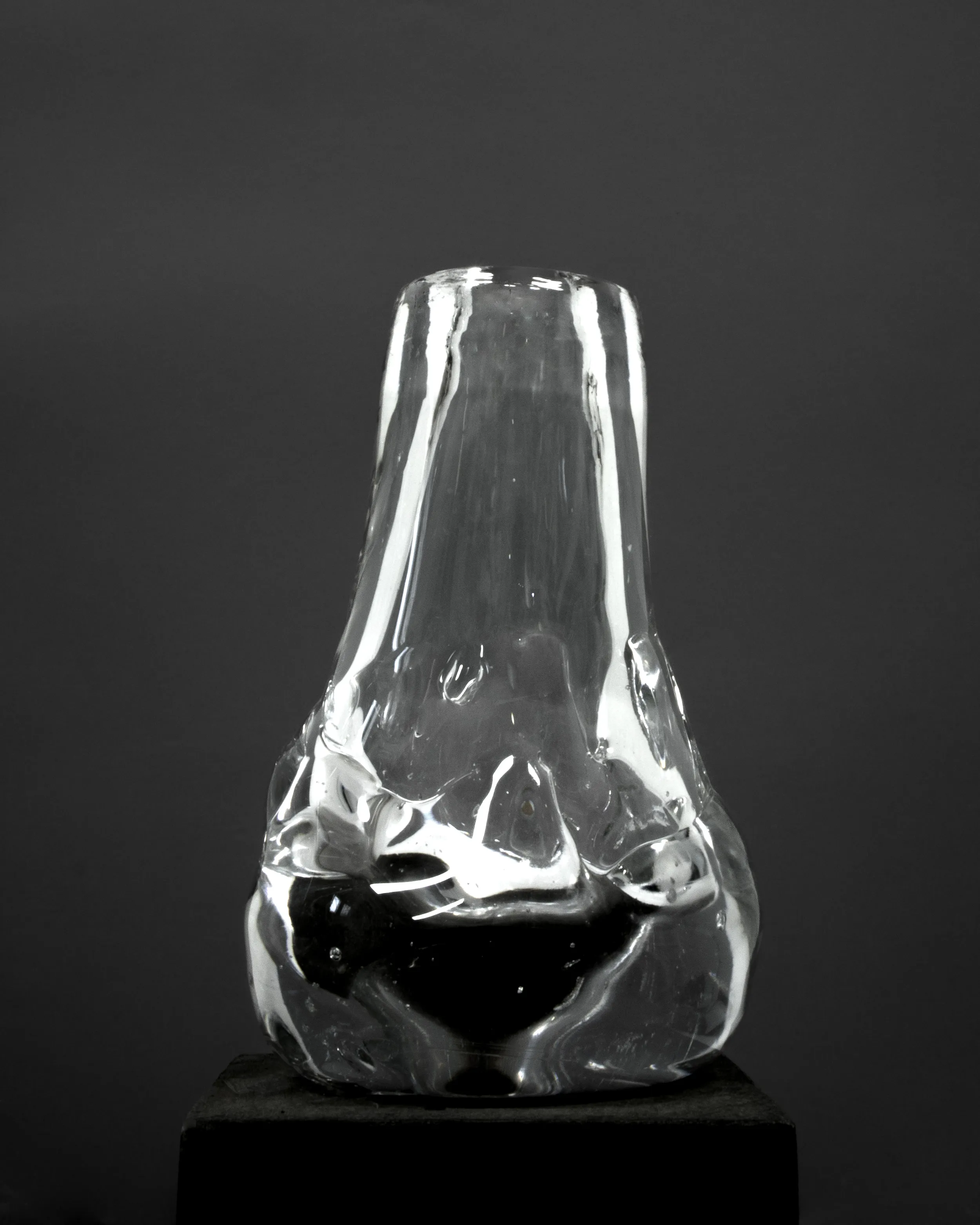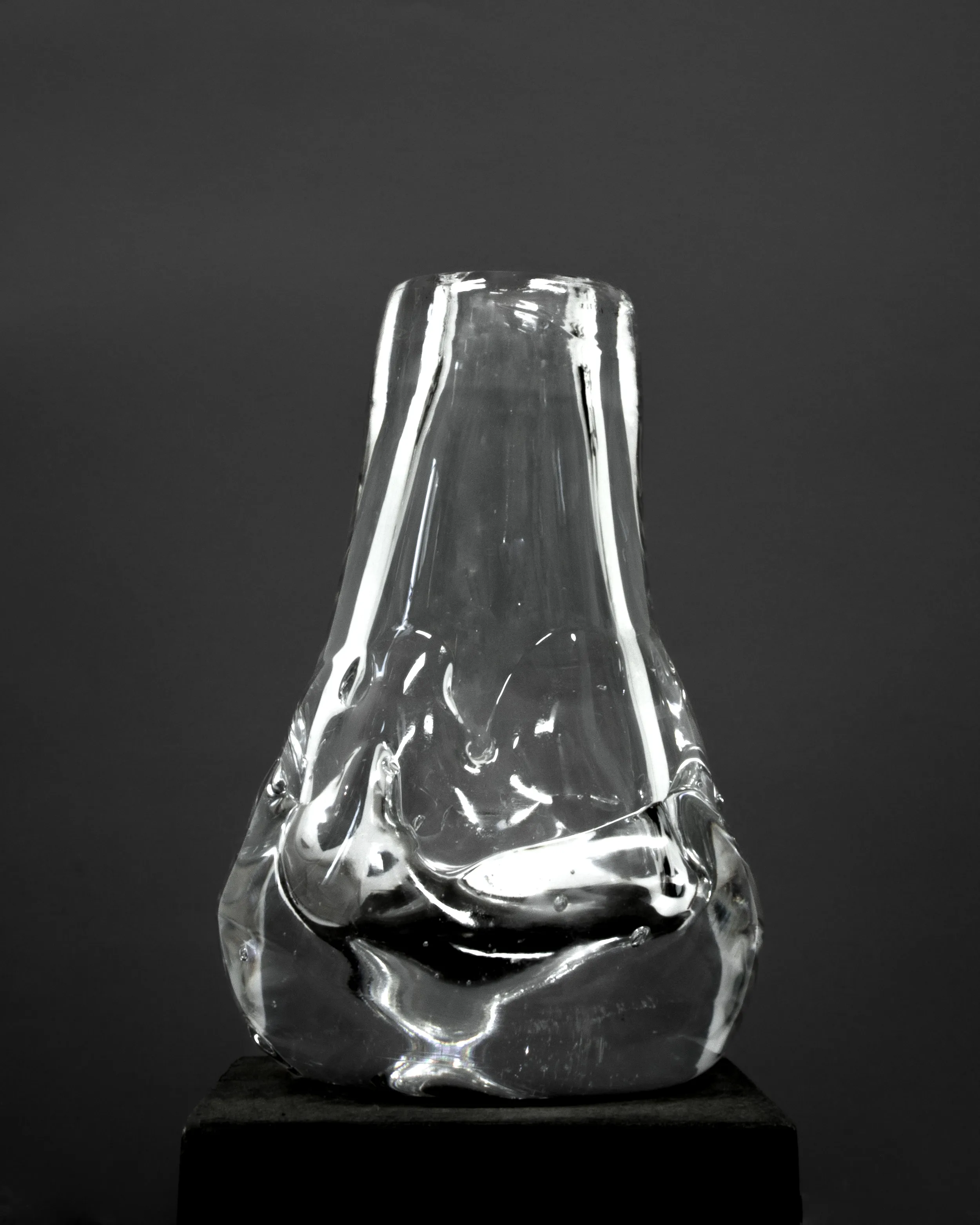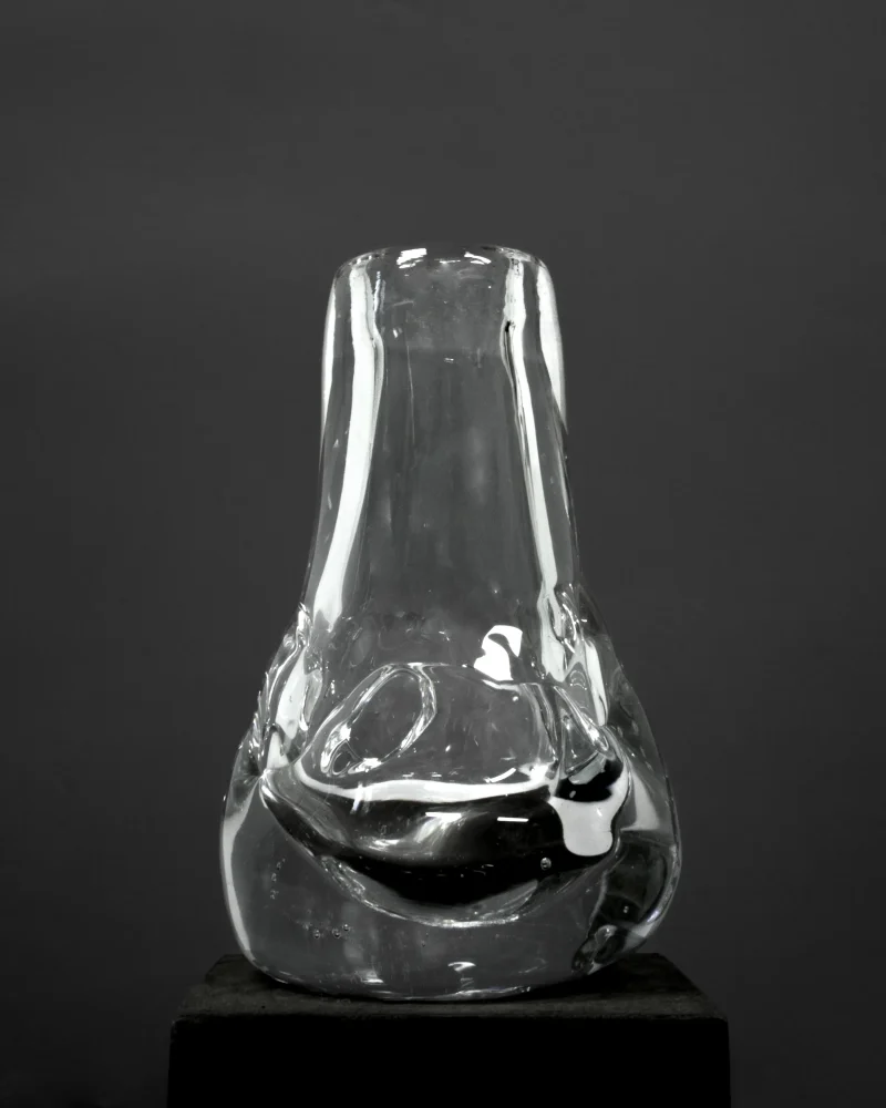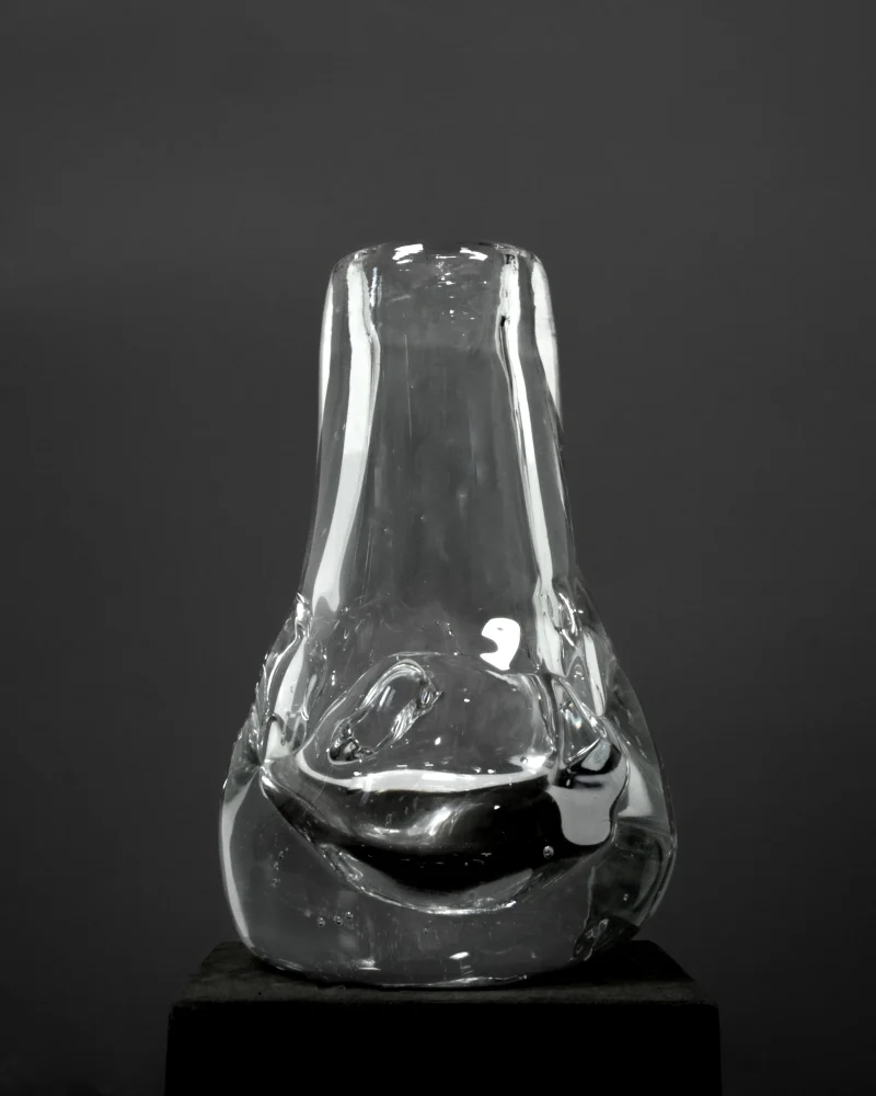 The Drop Shaped Vase is a distinctive creation by Aleksandra Zawistowska and her team of adept craftsmen. The vase is a product of an experimental and innovative approach to glass crafting. The team employs natural materials such as stones and ceramics in the blowing process, resulting in a rough, organic shape that captures the essence of natural beauty. This technique gives the vase its distinctive texture and form, distinguishing it from conventional glassware.