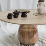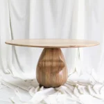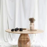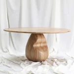 The Droplet dining table, crafted by Ecuador-based design house Laluz Handcraft, exudes peaceful, minimalist calmness with its simple yet powerful design. Its central base is inspired by the fluidity and movement of a droplet of water making its way through the Ecuadorian rain forest, conveying serenity and creating a sanctuary-like environment in every home.