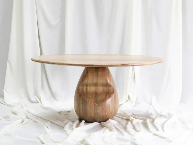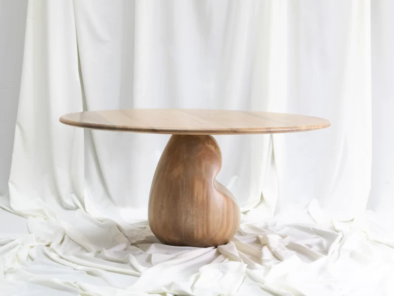 The Droplet dining table, crafted by Ecuador-based design house Laluz Handcraft, exudes peaceful, minimalist calmness with its simple yet powerful design. Its central base is inspired by the fluidity and movement of a droplet of water making its way through the Ecuadorian rain forest, conveying serenity and creating a sanctuary-like environment in every home.