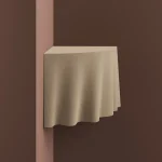 The wall-mounted corner table by T.Woon with Studio TOOJ, stands as a perfect embodiment of the designer’s passion for seamlessly blending illusions into her creations. Its outward appearance, resembling a soft fabric, conceals the fact that it is actually crafted from top-quality quartz sand. This intriguing concept, enhanced by intricate details, is made possible through Sandhelden’s innovative technique of 3D printing. This captivating piece will invite curiosity and fascination in any space.