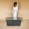 Inspired by the wave-like patterns of sweeping sand dunes, the statement coffee table is brought to life in a rough, yet premium feel black or natural sand finish, paired with a thick glass tabletop to give a sense of grandeur to the finished furniture piece.