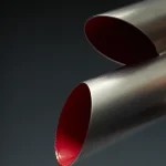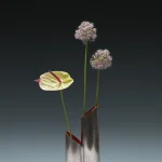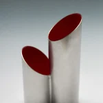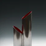 Two tubes, working together like communicating vessels. True to its name, it was created by due persone: Matteo Guida and me, Josh. It began as a tribute to the traditional porrón. Together with Ihintza Errekondo, we first made it in ceramic: the taller tube had a small lid with a pinhole that let out a thin stream of wine—usually all over you, until you learned how to use it. Later, we removed the lid to make room for flowers, and the porrón became a vase. Now it has taken shape in stainless steel, its interior finished in red—Matteo’s idea, because he says it adds a touch of Italian sensuality.
