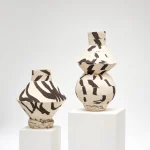 A series of contrasting works in black and white stoneware, the DUOTONE series combines graphic elements with three-dimensional form. The precise contours and pure simplicity of the colours merge into a visual experience. These ceramic pieces are defined by their clear dichotomy and harmonious balance. The sharp boundaries between colours create visual tension, while subtle transitions and gentle gradients reveal surprising depth and complexity. Patterns of repeating shapes and lines draw the eye, inviting it to follow a dance of light and shadow that comes to life in the stillness of the material. The rough surface is a result of the technique, giving the material a distinctive, almost porous texture.