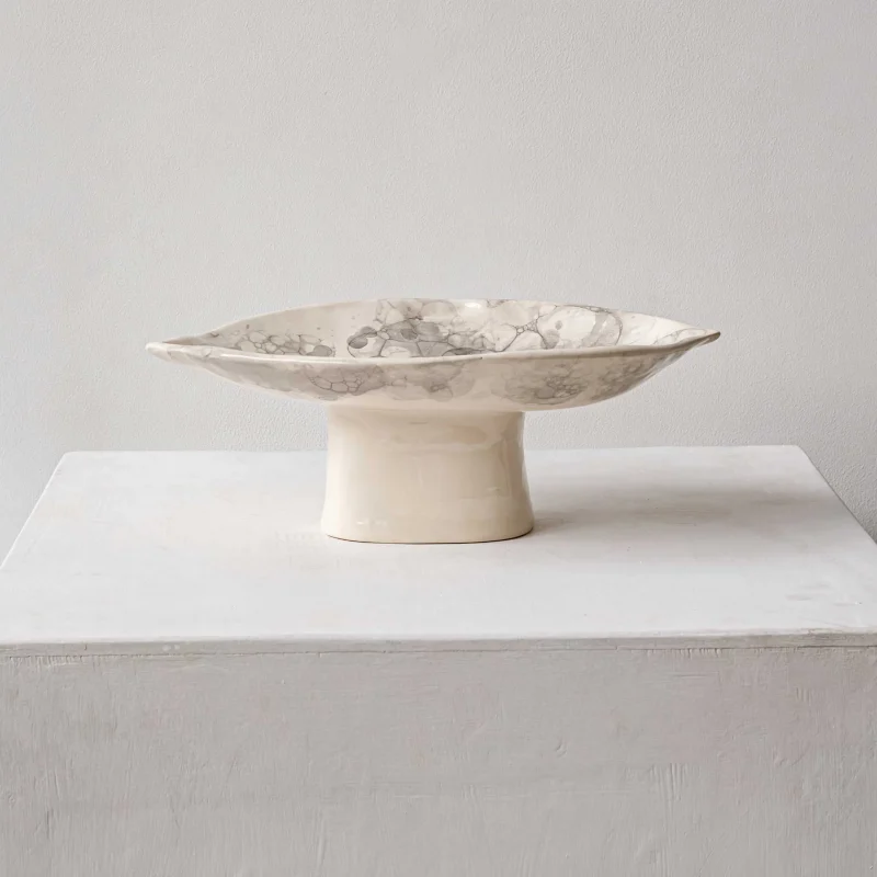 Combination of functionality and artistry, designed to be the focal point of any table or display. With its elevated pedestal base and flowing form, this bowl commands attention while serving as a versatile vessel for fruit, decorative objects, or simply as a standalone sculpture.