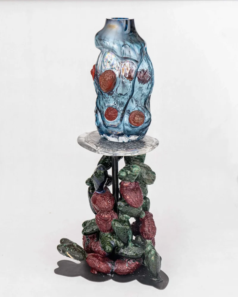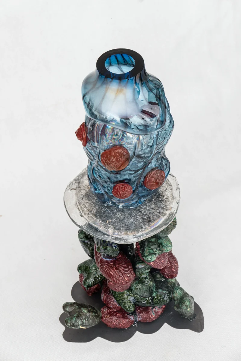 Anna Jožová (*1996) is a Czech artist and designer who works with glass on the border between free art and design. In 2023 she graduated from the Master's programme at the Glass Studio under the supervision of Professor Rony Plesl at the Academy of Arts and Crafts in Prague. Between 2016 and 2017, she studied in the Ceramic Design Studio under Antonín Tomášek at the Faculty of Art and Design at Jan Evangelista Purkyně University in Ústí nad Labem. Anna has been studying ceramics and porcelain since her studies at the Václav Hollar Secondary School of Art. Since 2018, she has presented her work in many collective exhibitions, fairs and art projects, e.g. at London Design Week, Venice Design Biennial, Czech Grand Design, Glassfest Karlovy Vary, etc., as well as in a solo show at the Kvalitář gallery in Prague. Apart from his own work, he also collaborates with designer Vlastimil Šenkýř, with whom he forms an artistic duo under the name Kombo. He has been consistently working on his own glass creation and design, combining different, at first sight disparate materials and classical glass techniques to create new unique objects.