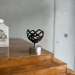 The Egg Cup by Emil Keller combines hardened leather with a turned aluminum base, creating a tactile contrast between materials. The distinctive surface pattern emerges from precise cuts in the leather and the natural shrinkage that occurs through heat treatment. This process not only enhances the visual texture but also hardens the leather, enabling it to retain its form over time.