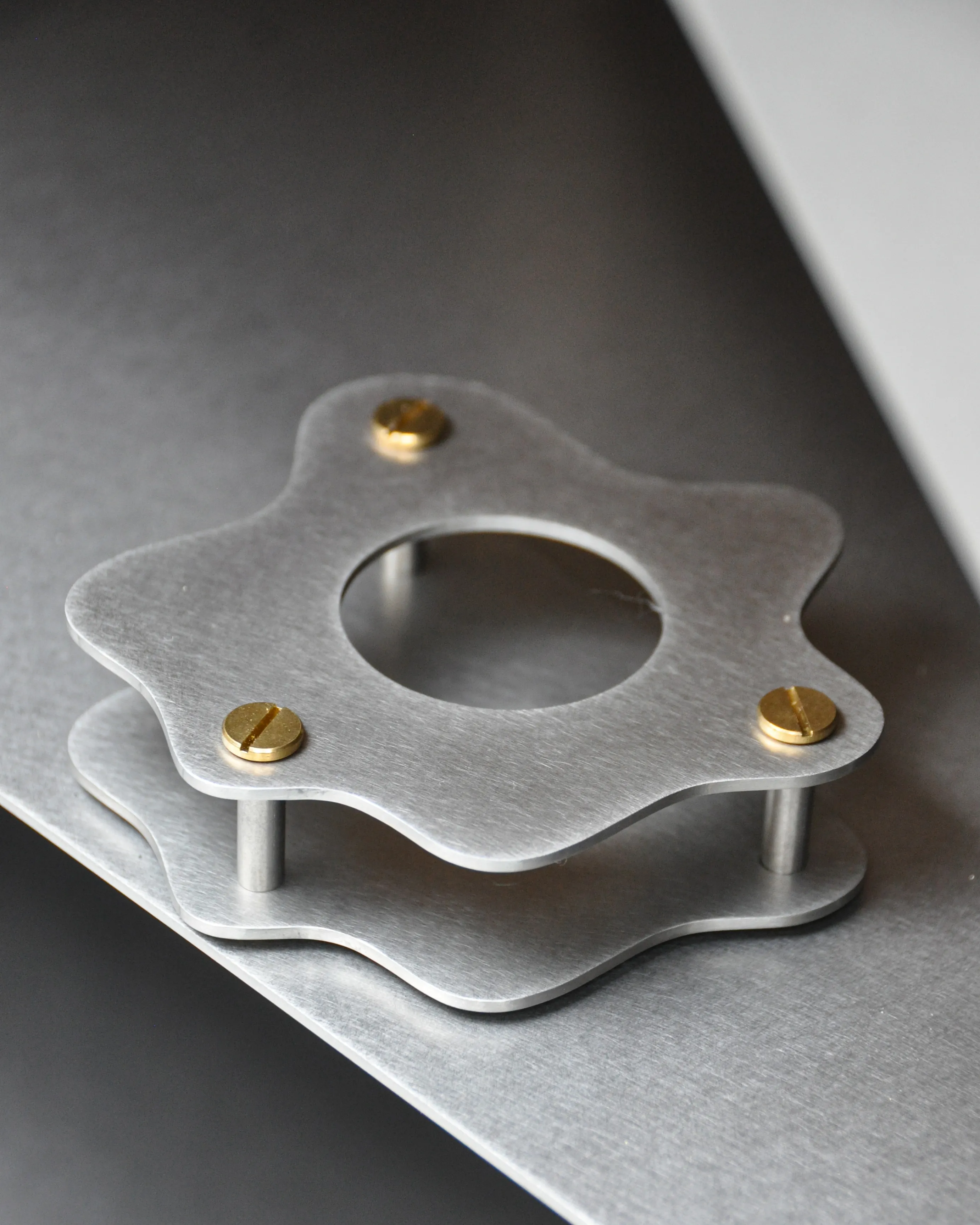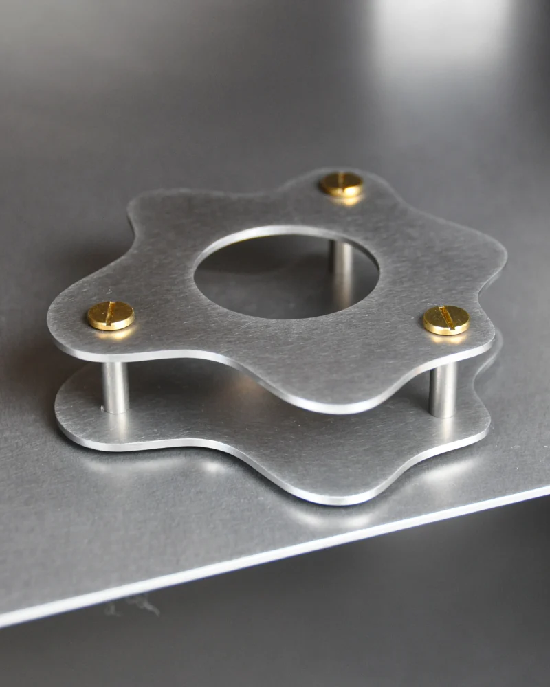 The design of this lamp gave rise to other creations as well as the 'sandwich design concept'. The insertion of assembly elements between two sheets of metal, allowing a dismountable design, became MLK Furniture's signature.