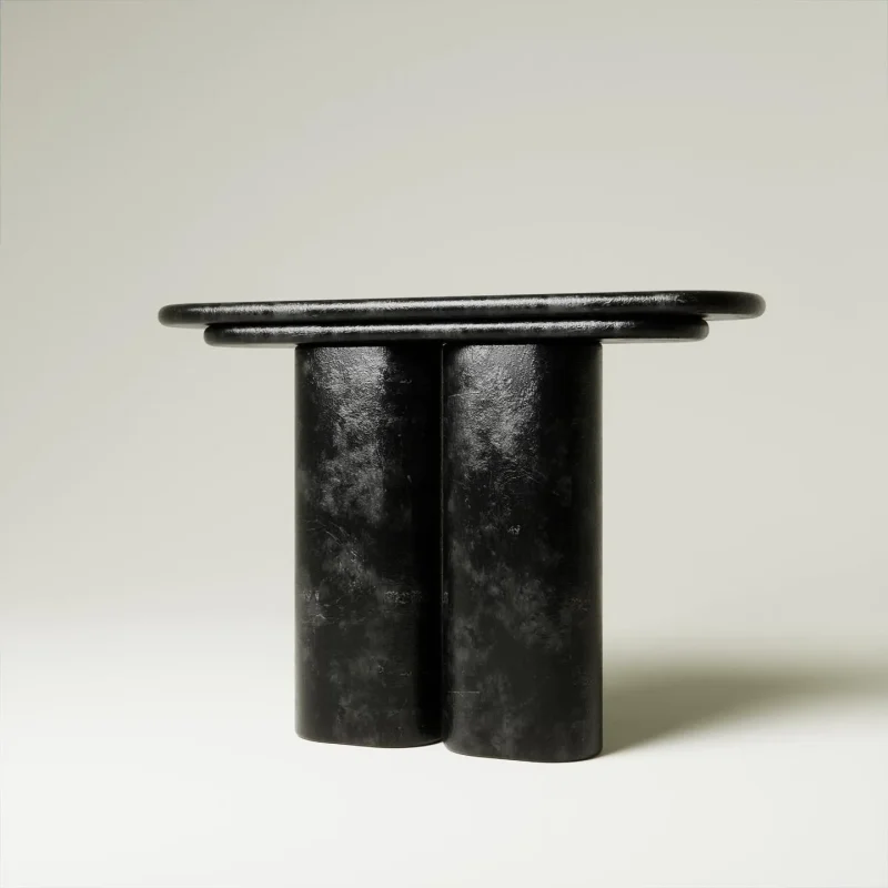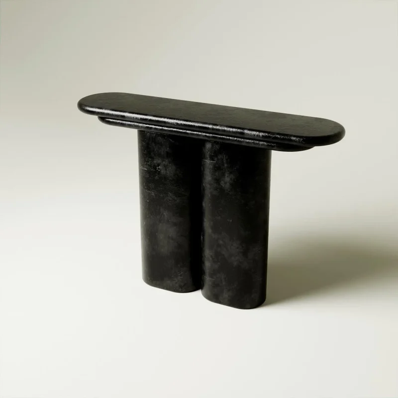 The Element Console, a part of the Element collection by Swiss designer, Vincent Mazenauer, embodies a synthesis of brutalist and neo industrial design lines. Crafted with bronze finishes, this console juxtaposes special materials with a distinctive history, seamlessly blending antique with modern and contemporary. The design achieves a harmonious balance, marrying round contemporary shapes with the enduring presence of antique materials, symbolizing the delicate equilibrium between past and future in the world.