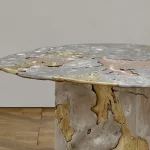 The Elemental Patchwork is an exploration of balance and transformation, embodied through an intricate mixture of metals cast at extreme temperatures. Each metal, though unique in origin and composition, merges with others to form a seemingly chaotic yet intentional whole. This work is a tribute to the unpredictable nature of life, where disparate events, much like these metals, shape us in unexpected ways. In this series, I draw on the tension between control and surrender, aiming to capture the quiet faith required to trust in the process of becoming. Through this process, I also seek to capture the raw power and fluid movement of molten metal, to solidify the ephemeral. These pieces symbolize the belief that all parts, no matter how contrasting or challenging, ultimately converge into a harmonious unity.