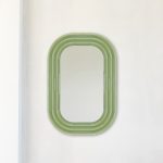 In the new mirrors collection, Pani Jurek explores ceramics and the reflective potential of mirror surfaces. Inspired by the ripple effect on water, the sculptural frames mimic the expanding circles that appear after a splash. The ceramic elements are airbrushed glazed by hand, which gives them a unique, artisanal character. The name “ELO” is a playful nod to Polish slang for “hello,” referring to the greeting between you and your reflection in the mirror.