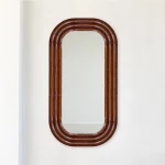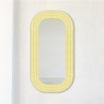 In the new mirrors collection, Pani Jurek explores ceramics and the reflective potential of mirror surfaces. Inspired by the ripple effect on water, the sculptural frames mimic the expanding circles that appear after a splash. The ceramic elements are airbrushed glazed by hand, which gives them a unique, artisanal character. The name “ELO” is a playful nod to Polish slang for “hello,” referring to the greeting between you and your reflection in the mirror.