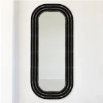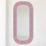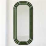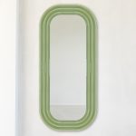 In the new mirrors collection, Pani Jurek explores ceramics and the reflective potential of mirror surfaces. Inspired by the ripple effect on water, the sculptural frames mimic the expanding circles that appear after a splash. The ceramic elements are airbrushed glazed by hand, which gives them a unique, artisanal character. The name “ELO” is a playful nod to Polish slang for “hello,” referring to the greeting between you and your reflection in the mirror.