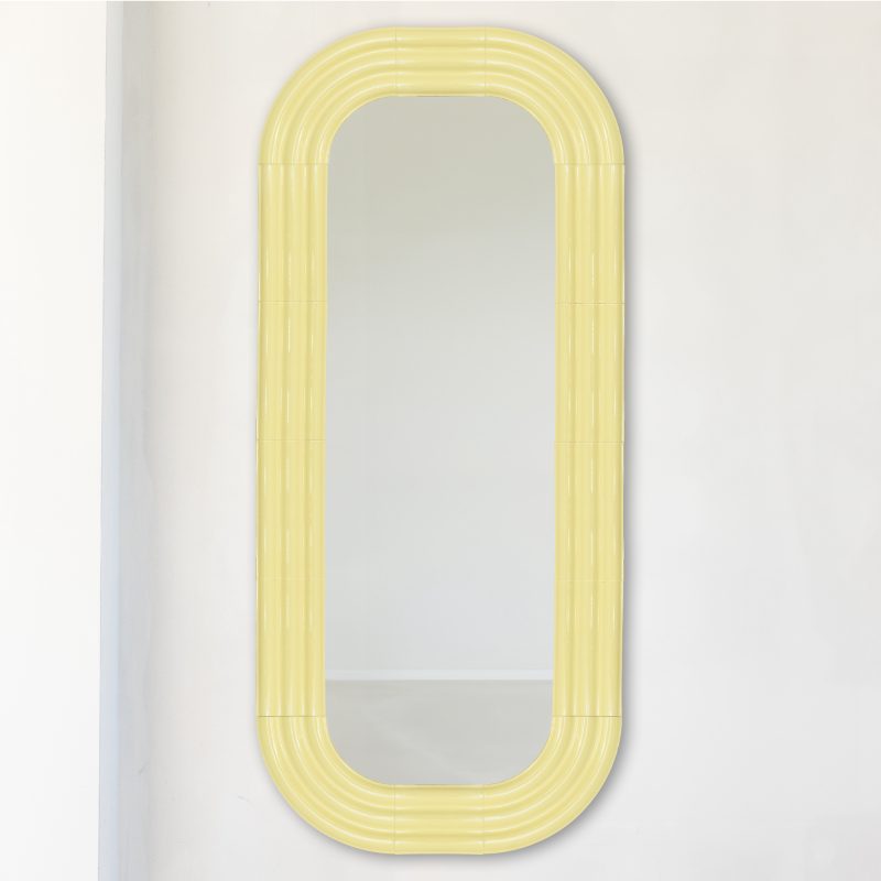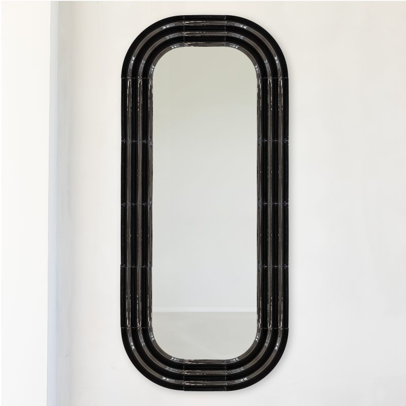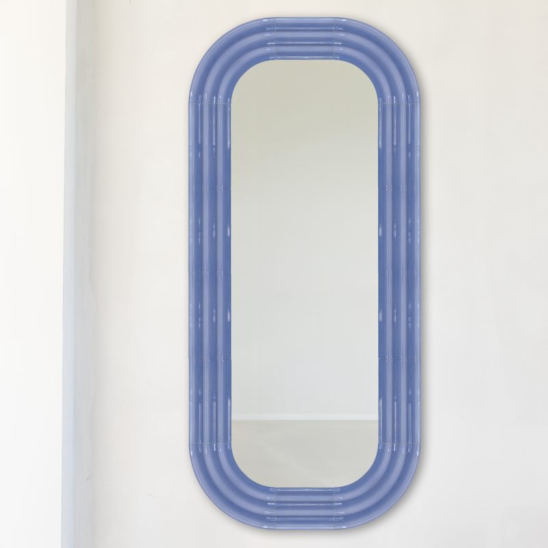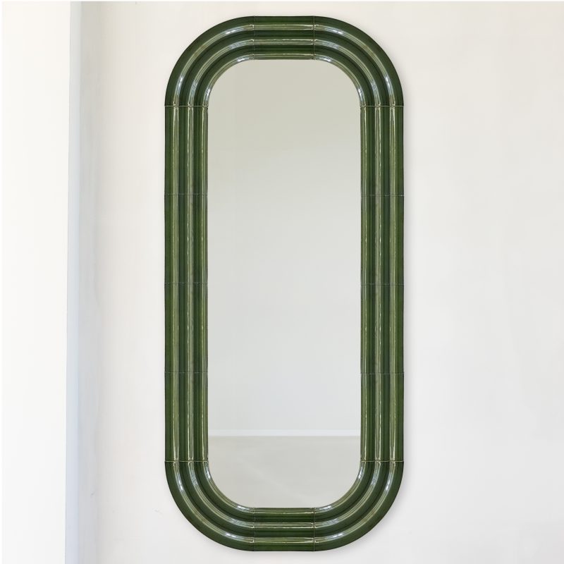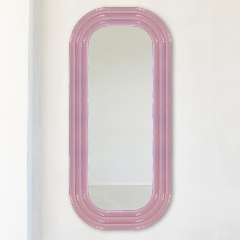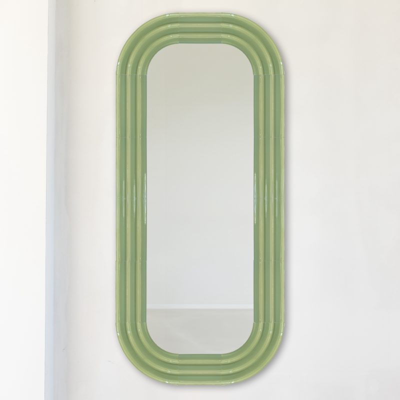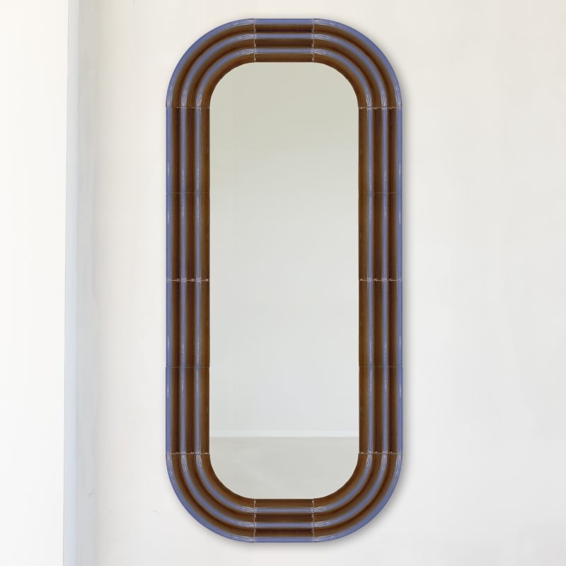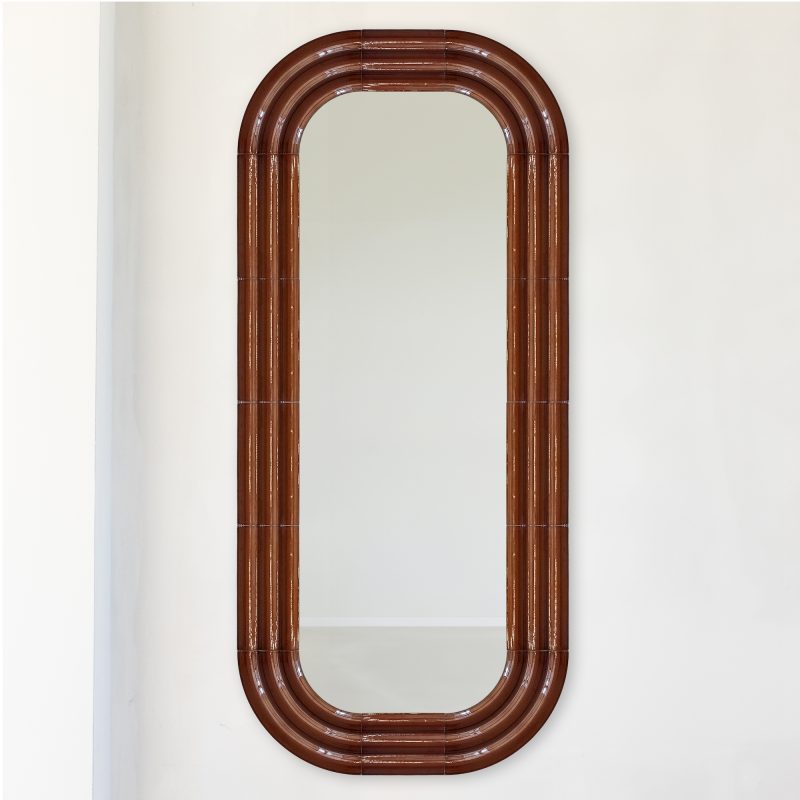 In the new mirrors collection, Pani Jurek explores ceramics and the reflective potential of mirror surfaces. Inspired by the ripple effect on water, the sculptural frames mimic the expanding circles that appear after a splash. The ceramic elements are airbrushed glazed by hand, which gives them a unique, artisanal character. The name “ELO” is a playful nod to Polish slang for “hello,” referring to the greeting between you and your reflection in the mirror.