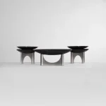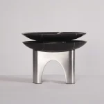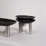 Elyx II is a sculptural vessel defined by the union of two seamlessly joined marble dishes, forming a singular elevated volume. The piece rests freely upon its handcrafted stainless-steel base, two independent elements that meet through balance rather than attachment. The base, made of 16-gauge stainless steel and filled with sand for stability, anchors the composition while preserving its sense of suspension. Hand-carved in black Querétaro marble with a matte finish, Elyx II reveals a dialogue between weight and elevation, precision and calm. Available in matte black or bronze finishes and in marble variations such as Venetian white, beige or red travertine, and Santo Tomás grey, it embodies a quiet harmony between form and structure.