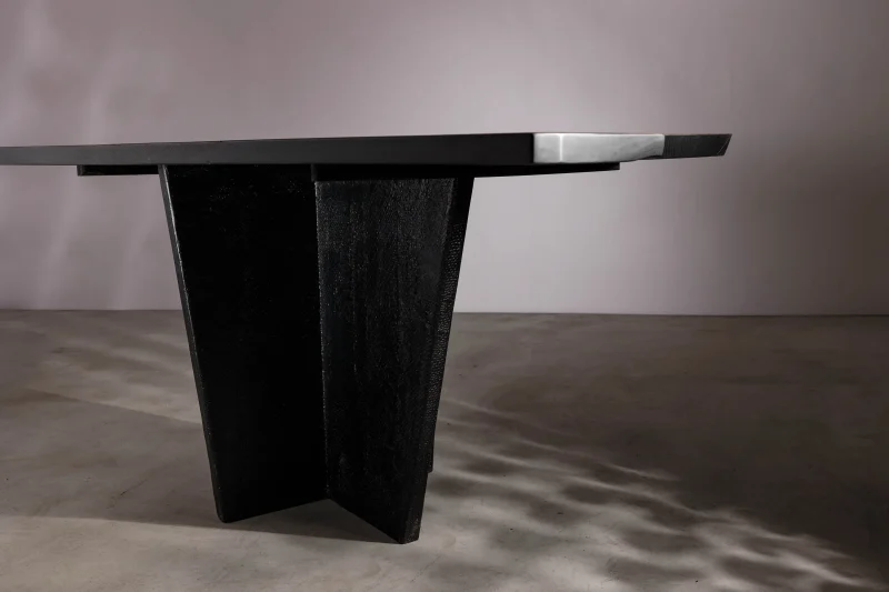 What sets this dining table apart is the unique texture created through the use of fiberglass during the production process. The result is a coarse surface that showcases the natural beauty of the materials used.