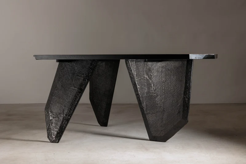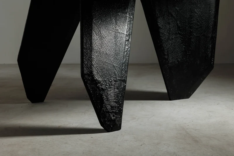 What sets this dining table apart is the unique texture created through the use of fiberglass during the production process. The result is a coarse surface that showcases the natural beauty of the materials used.