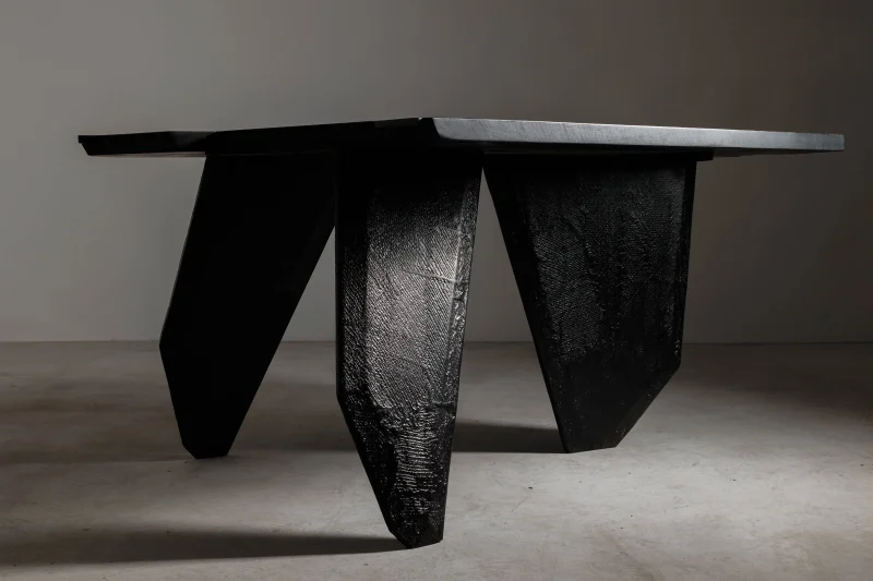 Crafted with the utmost care and attention to detail, this dining table showcases the natural beauty of organic materials. Its rough-hewn surface is a nod to the brutalist movement, while its sleek, minimalist design adds a touch of modern sophistication.