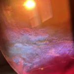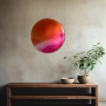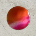 This functional art piece, Ember by Courtney Kinnare, builds a color story through multiple layers of translucent tinted resin over a mirrored glass base. Throughout the day, as the light changes, their vibrant hues shift in color and tone – kaleidoscopic portals offering new perspectives each time you view them. I consider this work my signature series and have been developing the technique for over 2 years.