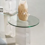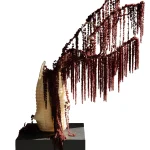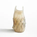 These vessels are part of an ongoing series called “Reliquary for the Deconsecrated”. Each form draws from the shape of a bodice, tight, protective, ornamental, and was created using blown hot glass, and glass powders to evoke the translucency and texture of the skin. This vessel is named after Empress Sisi, the once empress of Austria. Women whose identities were shaped through adornment, power, and constraint. Accessorized by Bond Hardware, blown glass made with the help of Sticky glass.