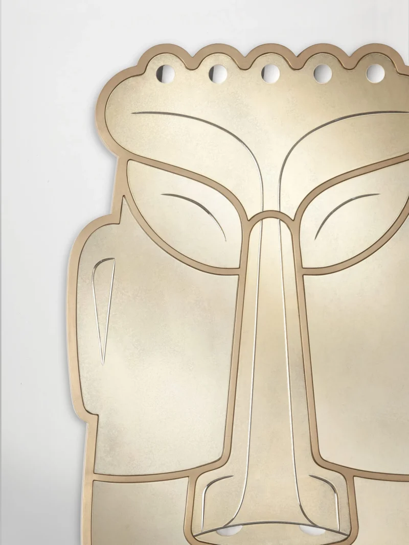 “ENDO” is a golden mirror, handmade and engraved in Venice. The wood structure is gold-leaf coated.