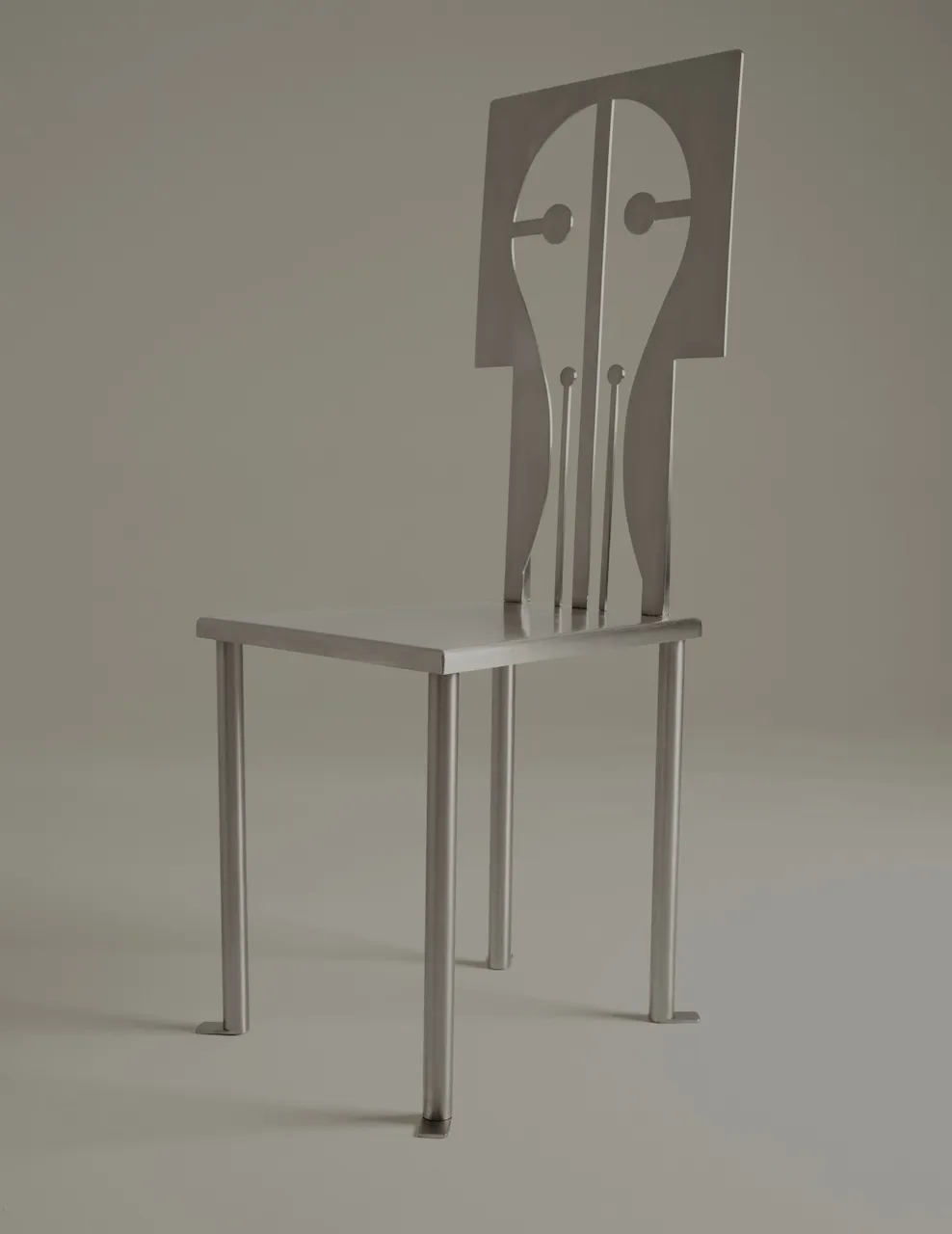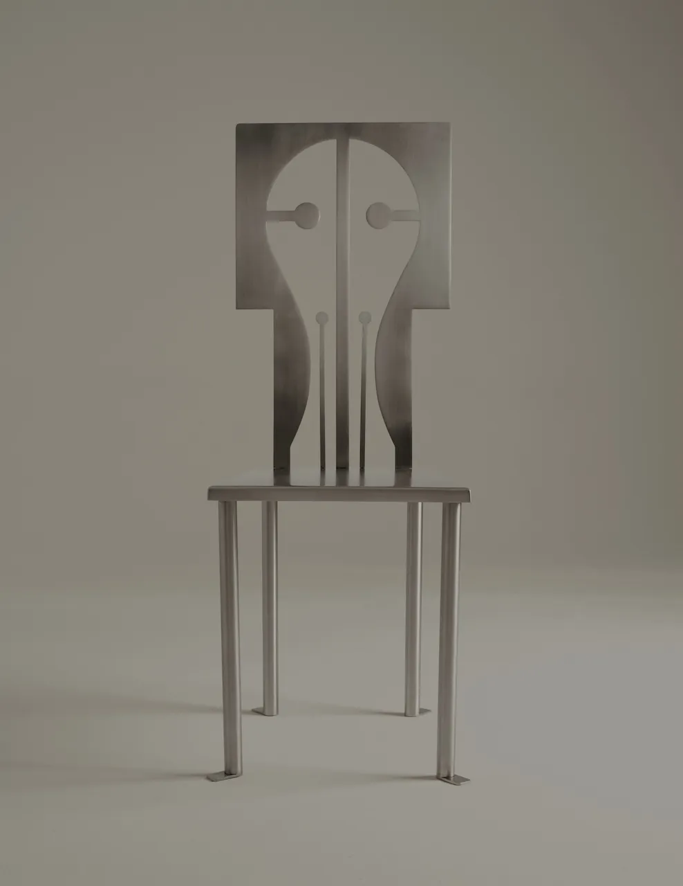 Inspired by Picasso’s horse costume in Cocteau’s ballet Parade, Epona and Luna chairs blur the boundaries between the natural and the artificial, the dreamy and the real, the stage and everyday life. Formed from laser-cut stainless steel pieces welded by hand, Epona stands as an elegant yet humorous piece of furniture. Its soulful silhouette introduces a sense of fiction into daily reality, casting a quiet dreamlike atmosphere. Whether standing alone or paired with Luna, it heightens the theatrical presence of a space.