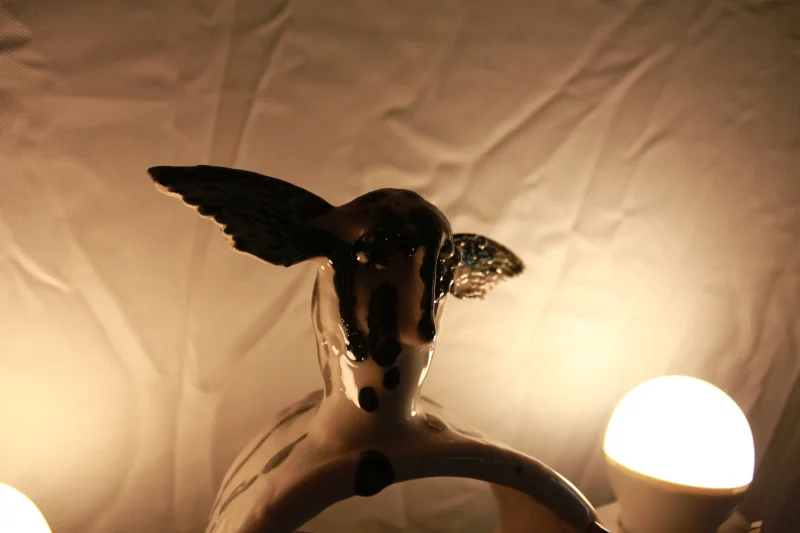 “Equilibrium” by Ia Liparteliani is a ceramic lamp that symbolizes the duality of human nature. It represents the inner balance between the contrasting forces within us — light and dark, strength and vulnerability, motion and stillness. These dualities coexist within each person, and at different times, one may outweigh the other. The lamp serves as a gentle reminder that true peace, true illumination, arises not from denying one side, but from embracing both. Balance is not static — it is a living, shifting harmony. In that balance, the light of the soul is born.