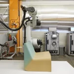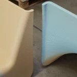 The monolithic seat of the “Ermis” Chair follows simple and ergonomic lines and is robotically crafted with a single spiral plastic thread that follows the geometry. The layer orientation constantly follows the geometry of the chair via a slight rotation. As a result, the chair is strong with minimal material usage. At the same time, this approach creates a graphic texture on its surface.