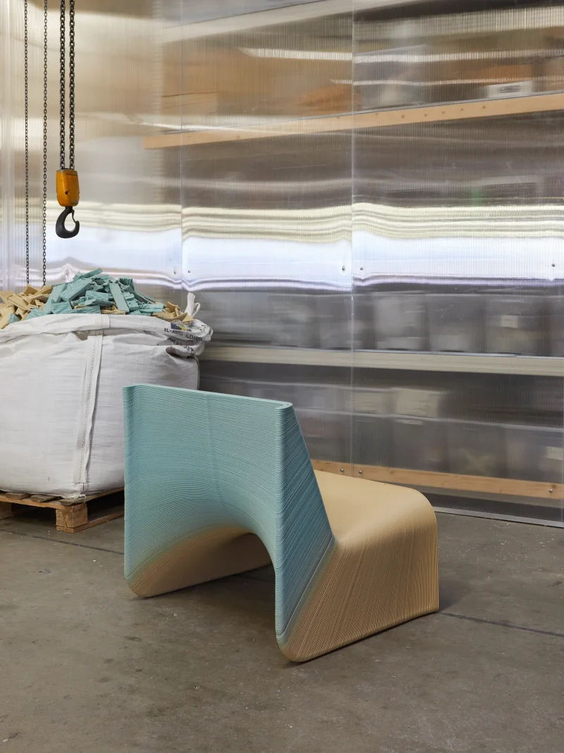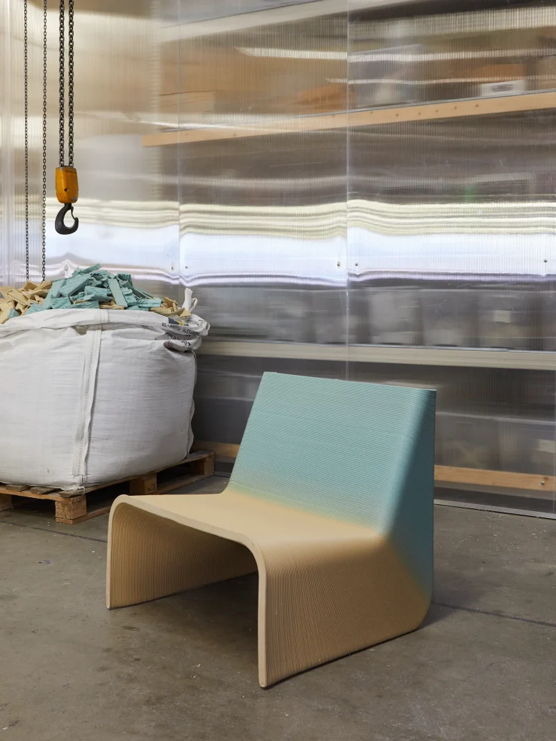 Design studio The New Raw goes zero waste by creating a limited series of the “Ermis” Chair, which is crafted from the waste material of their in-house production facilities in Rotterdam. By using this material resource, they give a new life to their own waste and, at the same time, create “one of a kind” objects of high durability. In this limited edition, the “Ermis” Chairs are made with batches of different colored production wastes which provide a unique identity to each piece through unexpected color transitions and gradients.