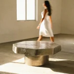 Bold design Brutalism Brutalist Coffee table Collectible Furniture contemporary living room geometric design Hospitality limited edition table Living Room Metal coffee table Modern coffee table Neo Industrial Sculptural table Statement Piece Textured Surface