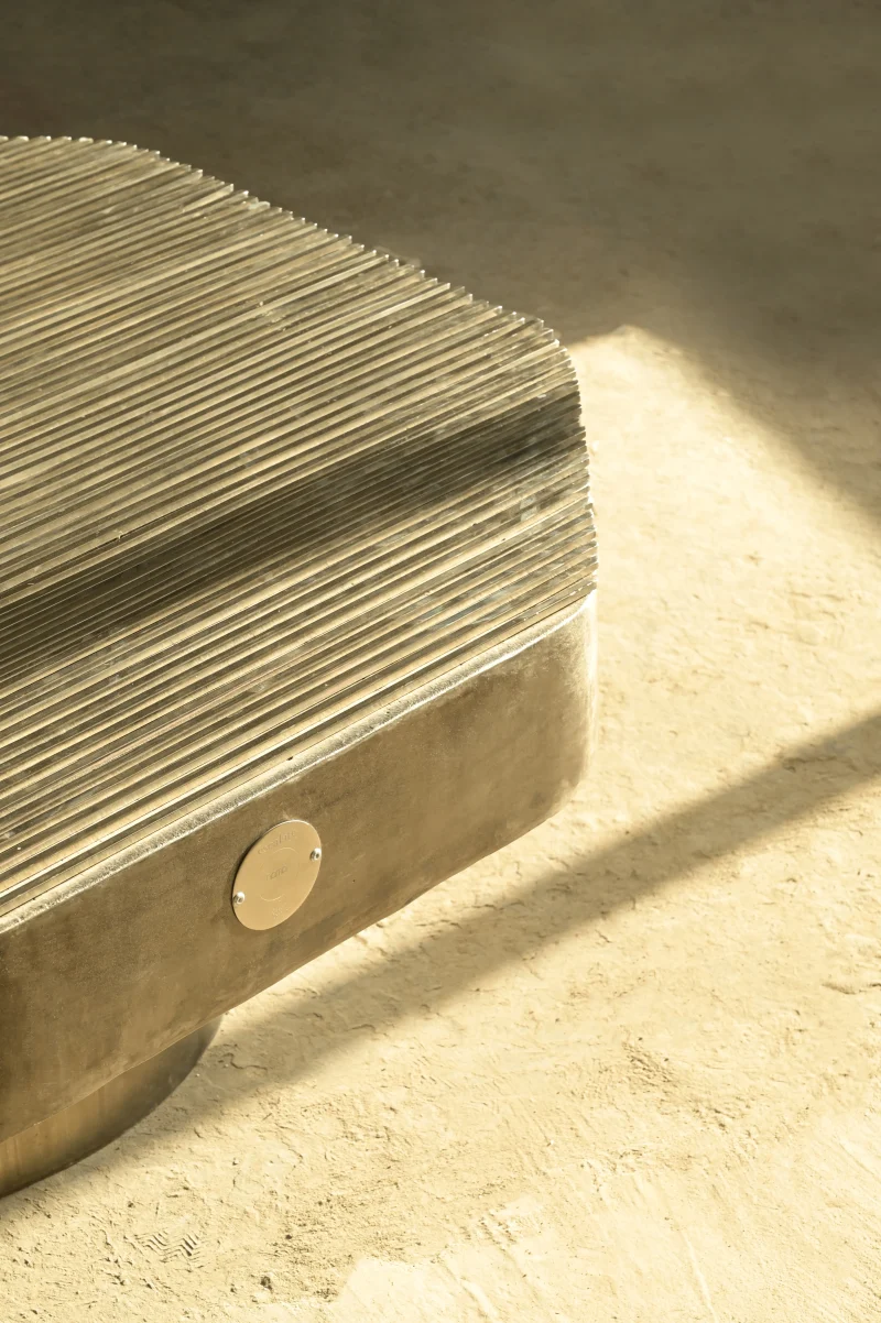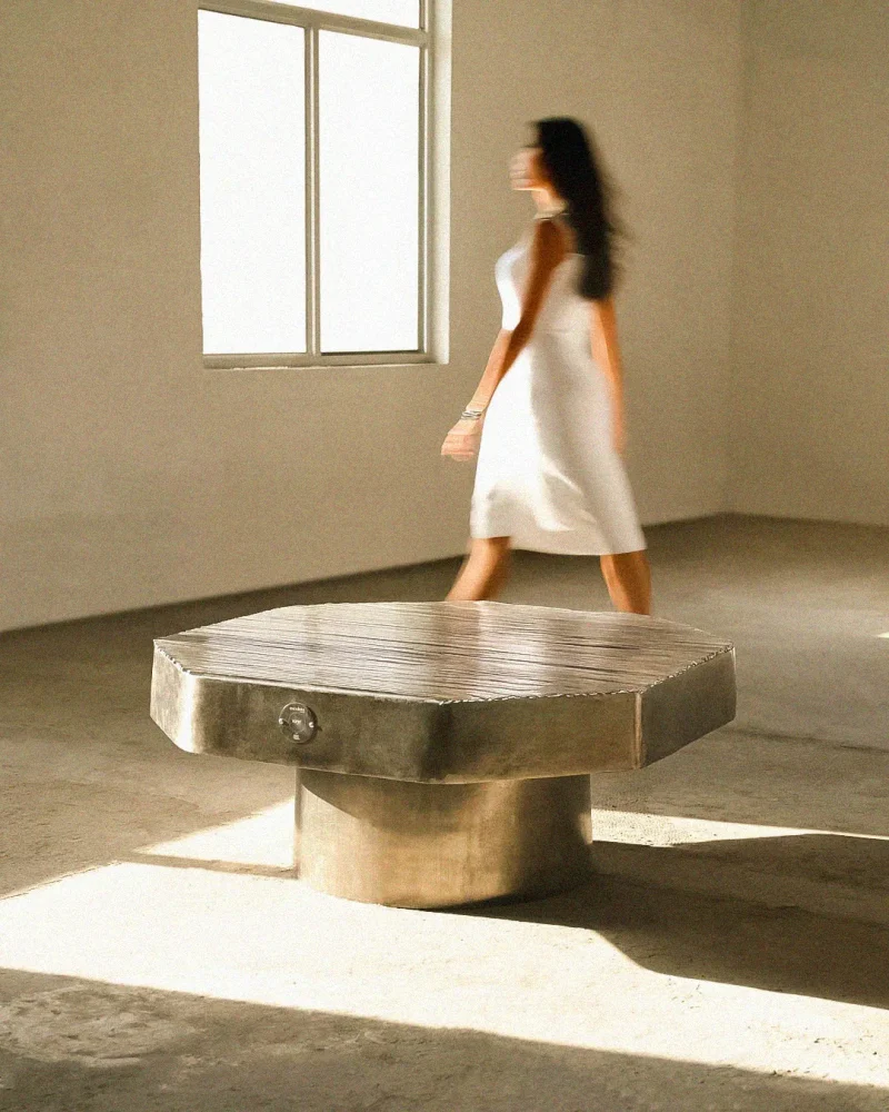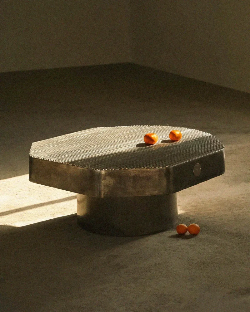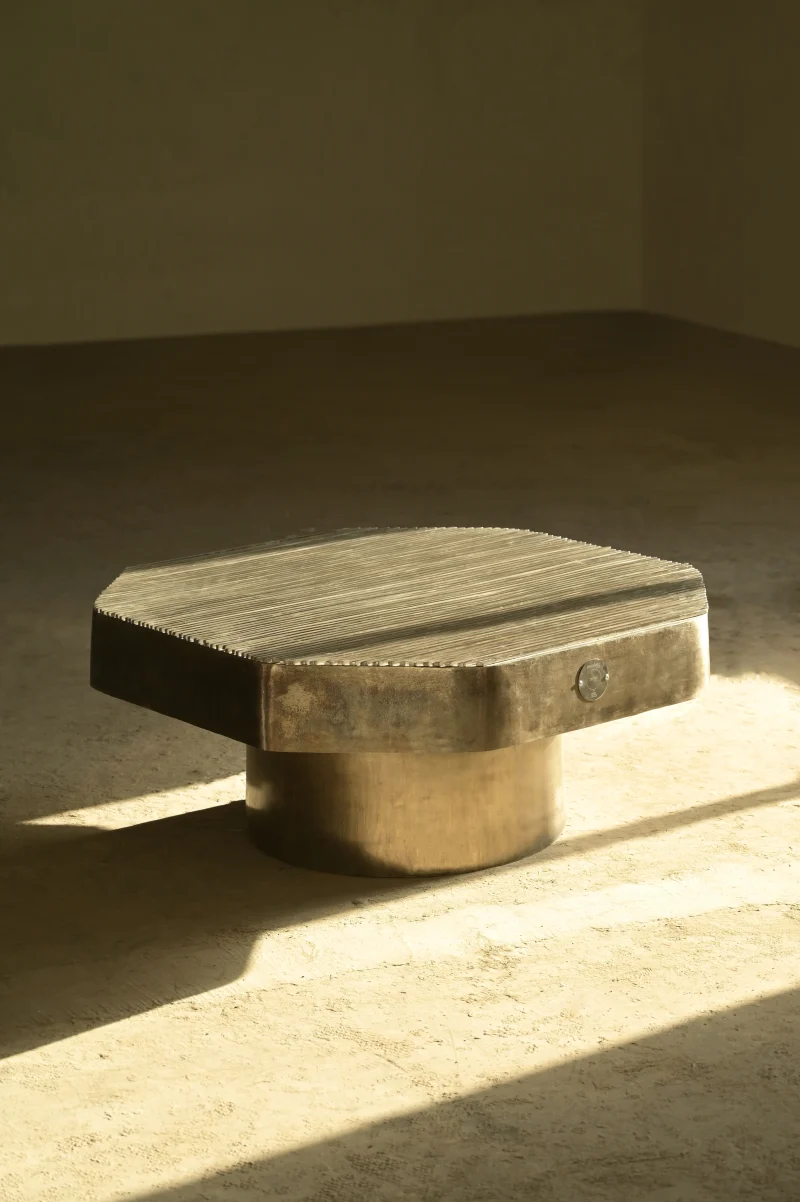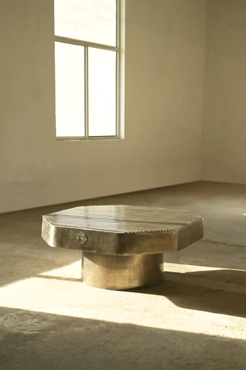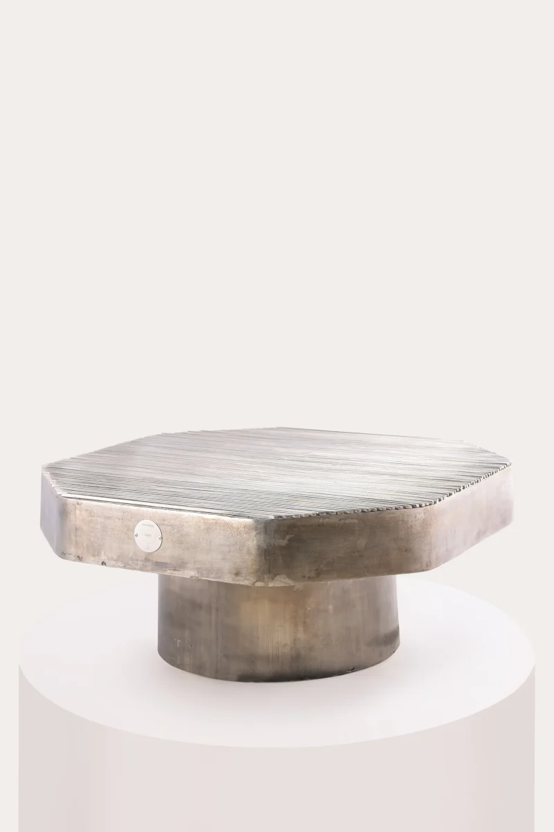 Bold design Brutalism Brutalist Coffee table Collectible Furniture contemporary living room geometric design Hospitality limited edition table Living Room Metal coffee table Modern coffee table Neo Industrial Sculptural table Statement Piece Textured Surface