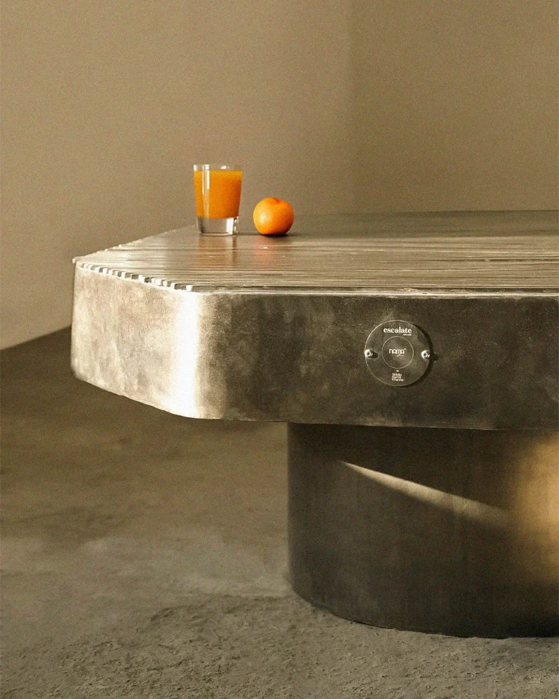 Its bold, geometric form and gunmetal grey finish exude elegance, while the textured surface adds a playful nod to the smooth functionality of an escalator. Whether it’s holding your coffee, magazines, or conversations, Escalate elevates the experience every time.