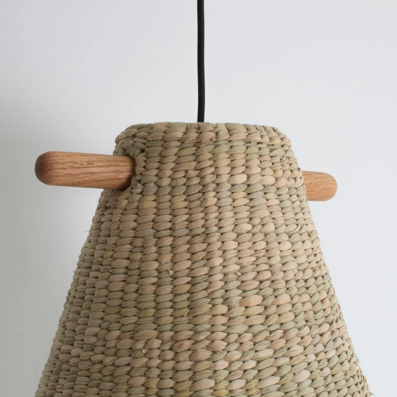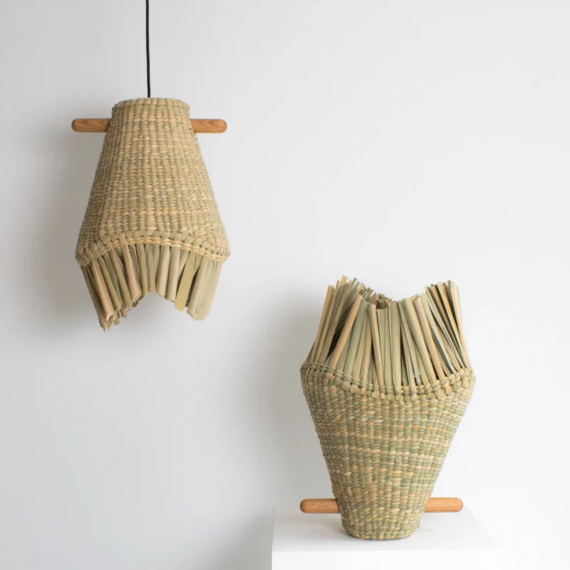 The design of this lamp by Mexican studio, Axoque, draws inspiration from the mouth of the white fish, paying homage to the endangered species in Lake Pátzcuaro, Michoacan. Crafted with chuspata, a natural fiber thriving on the lake’s shores, it is meticulously hand-woven by artisans from Ihuatzio, Michoacán. The lamp emanates rustic and boho chic vibes, reflecting a harmonious blend of nature-inspired design and artisanal craftsmanship.