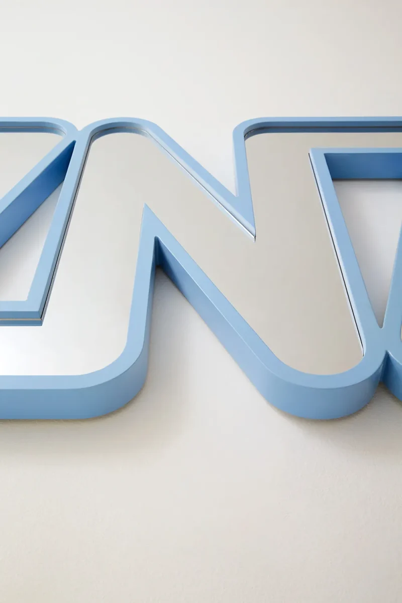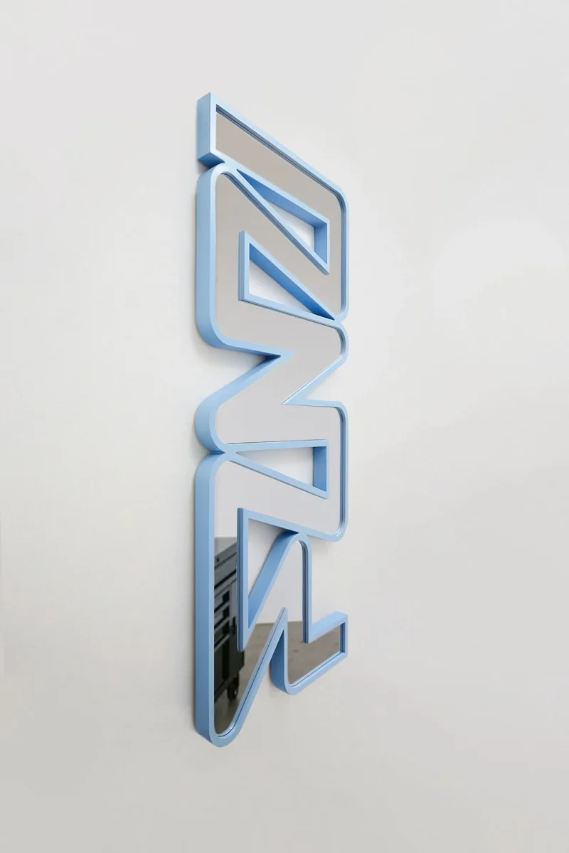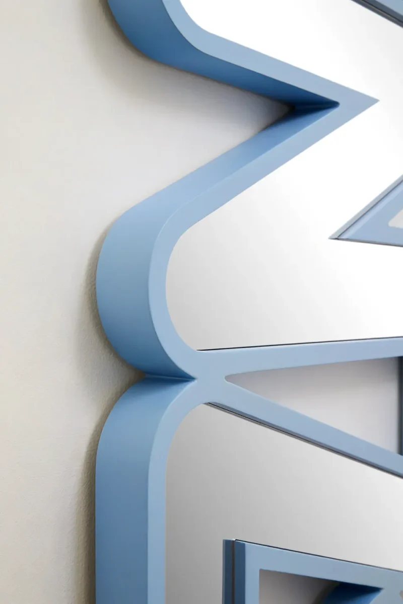 Laser-cut and lacquered MDF frame with acrylic mirror.