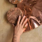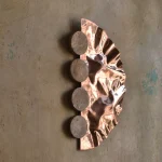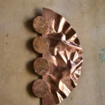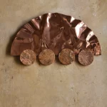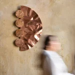 ESTERO is the place where the sea and the river met. This copper and marble sculptural piece transmits the subtlety and authenticity of each sea wave, the swaying of the tide reminds us of the singularity of each moment, allowing us to be captivated by the subtlety of the clean and simple forms. The contrast of materials, textures, and colours generates a piece that becomes a protagonist.