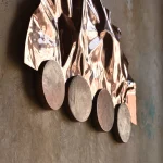 This piece is a handcrafted wall decoration made of copper and marble. Each piece has beautiful little differences between each other which makes it unique each time. This piece is placed on the wall and is designed to be placed horizontally or vertically. The type of wall mounting is simple but safe, as easy as placing a painting.