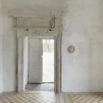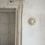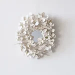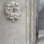 A wall mirror framed with hand-formed porcelain petals by Tiini. Inspired by the delicate texture of inflorescence, it balances the fragility of the material with the purity of reflection.
