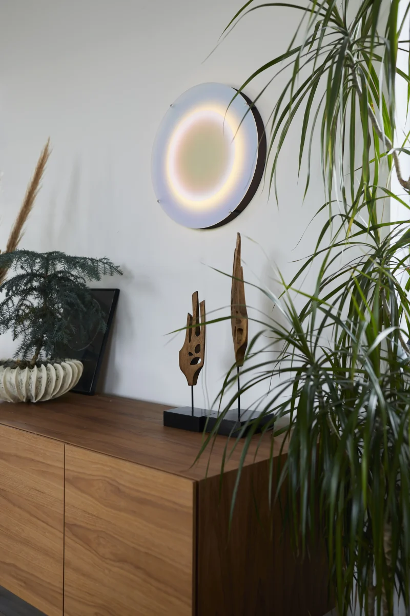 Since the light source emits only white light, all the colorful shades are a result of optical phenomena such as birefringence, refraction, and reflection, the result of our Studio’s commitment to material innovation.