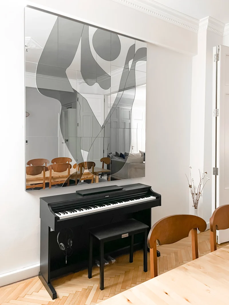Exposè mirror is made of two large different-coloured glasses cut into many smaller segments and joined together by hand in order to create a juxtaposed image. Highlighting the line between art and function, this is a unique piece that plays with the concept of watching and being watched. Inspired by John Berger’s ‘Ways Of Seeing’, overlapped shapes and grid collage are used to form stable yet dynamic female figures within the mirror frame. With its luxurious and bold attitude, Exposè Collection enlarges your space by complimenting shape and dimension.