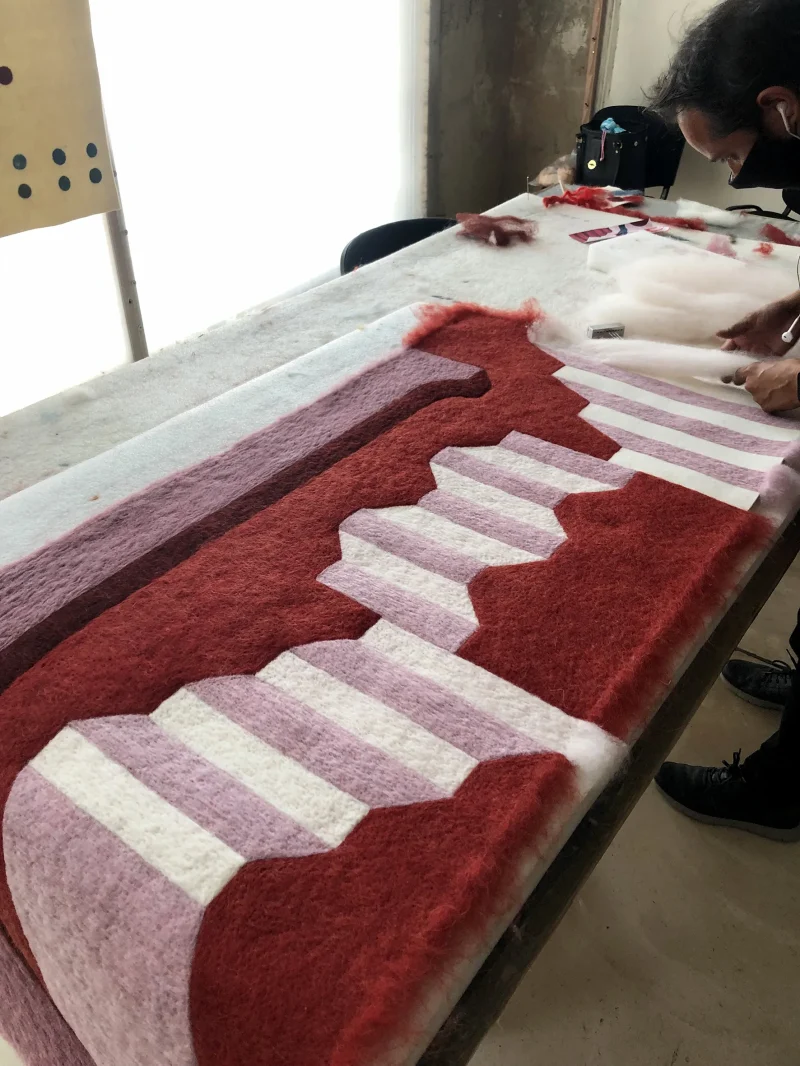 The “I Saw, I Felt” collection came to life in Oaxaca, Mexico, where the tapestries were designed and created during two artist residencies at a felting workshop located in the mountains of San Agustín Etla.