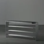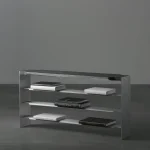 Mantas Lesauskas’ furniture reminds us that design is the love language of objects. In the collection “Slipcover”, it is deceptively firm, without immediate betrayal of its intentions. Brushed aluminium, limed oak, parachute pleats – a militaristic Gothic that seems to leave no room for tenderness. Yet the soul of these objects is subtle: they are the readers’ furniture on which the stories rest. Their stark structures and rich materials legitimise the experiences that separate life from survival. The discipline that binds them together comes not from the need to defend but from the desire to nurture, to have something to lean on in every chapter of life. When we surrender to these things, we become the softest parts of them. We can read the titles of books from all sides, strip the table in search of its legs, try to pull a duck out from under a shelf, and do other little things to which we do not typically attach much interpretation. We can fill the crevices of the armchairs with our own little perversions and stock up for the next winter of pain when there is nothing left to draw from. The soulfully shimmering curtain in the exhibition is like a thin line you only experience in free fall or when you watch a mystery end. These carefully honed and deliberated objects prepare to live on in various colours and with different surfaces, to speak to future strangers in a new love language of objects.